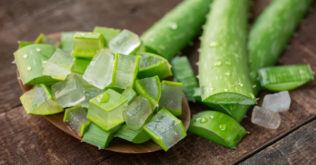 1. Corta las hojas de aloe vera en trozos pequeños y extrae el gel de la hoja.